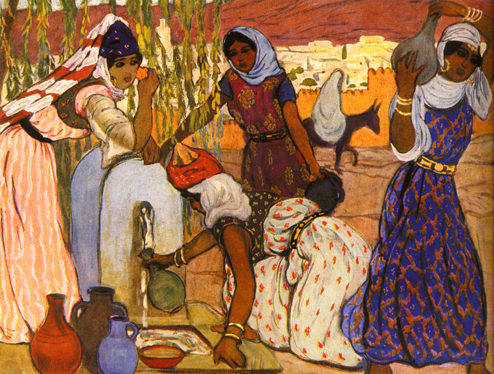 André Suréda (1872-1930) ; jeunes filles de Tlemcen à la fontaine, 1930