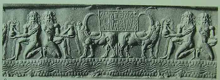 Combat de Gilgamesh et de Enkidu contre le taureau-céleste ; début du IIème millénaire BC